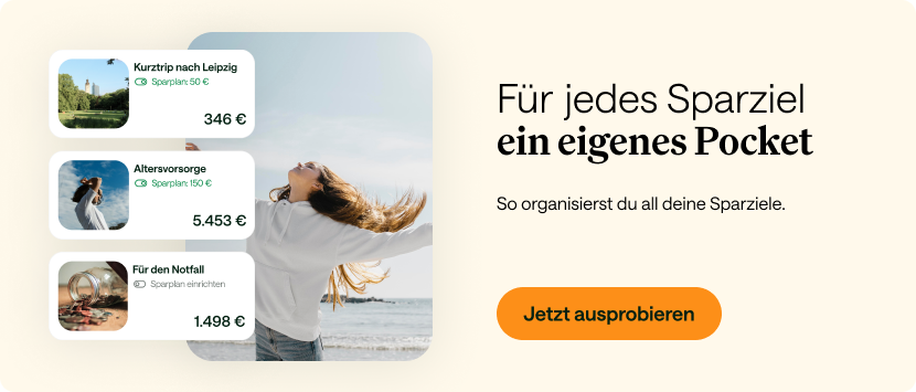 Mithilfe der Pockets kannst du für viele verschiedene Sparziele monatlich – oder auch nur einmalig – Geld zurücklegen. Dabei entscheidest du, wie hoch dieser Spar-Betrag sein soll und welche Risikoziffer du für das Ziel festlegen möchtest. Mit diesem Spar-Tipp hast du immer den Überblick, bleibst organisiert und motivierst dich quasi selber zu mehr Disziplin beim Sparen. Deinem erfolgreichen Sparen-Vorhaben steht also nichts mehr im Weg.