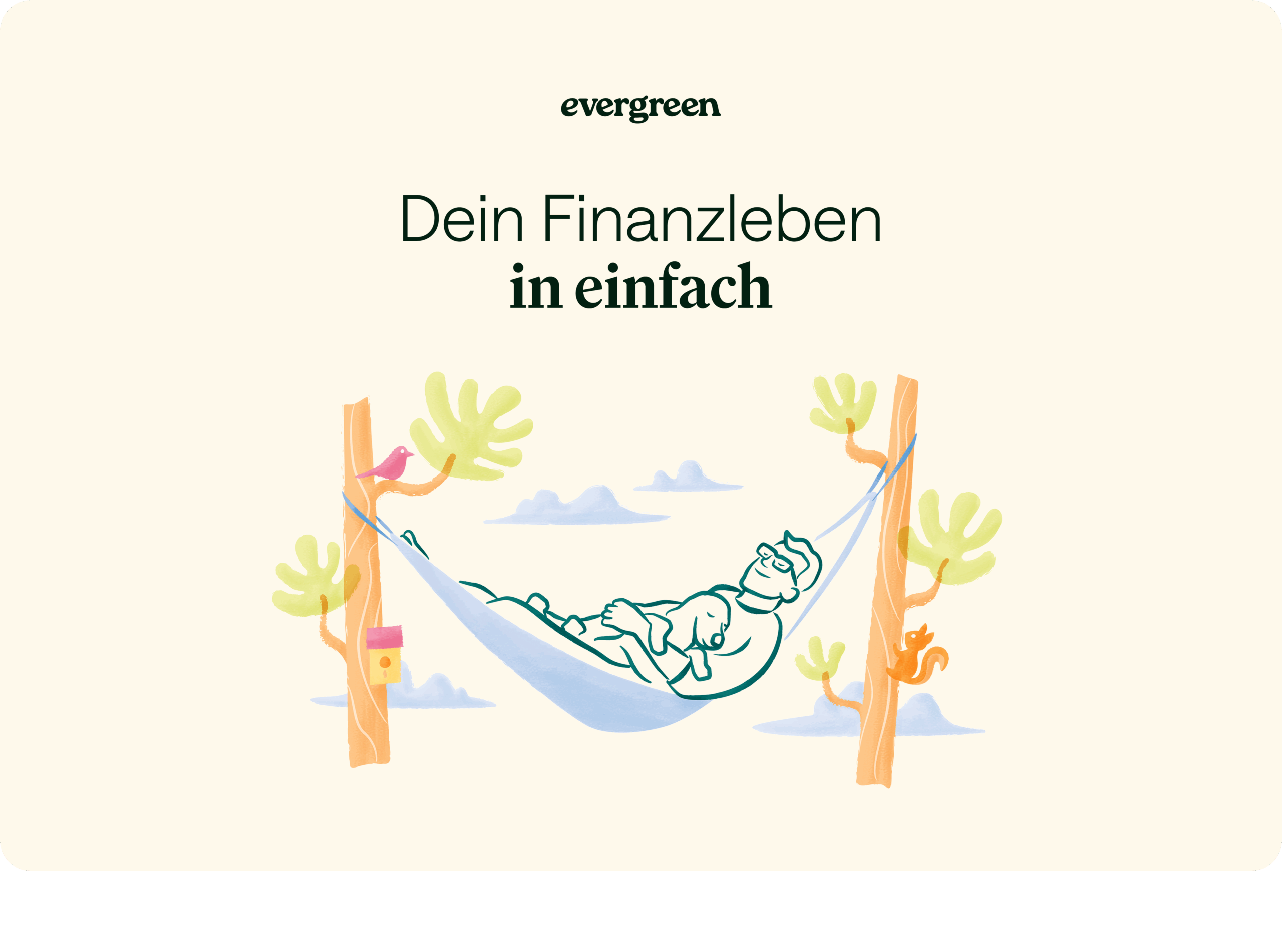 Bei Evergreen kannst du dafür ganz einfach ein ZinsPocket anlegen, das mit einem Tagesgeldkonto vergleichbar ist. Damit bleibst du flexibel und kommst schnell an deine Ersparnisse. Gleichzeitig liegt dein Geld aber nicht einfach auf dem Girokonto, sondern wird verzinst.